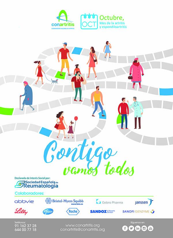 “Contigo vamos todos” es el lema con el que Coordinadora Nacional de Artritis, con la colaboración de otras asociaciones de pacientes, pone en marcha la treceava edición de la campaña, “Octubre, mes de la artritis y la espondiloartritis” con el